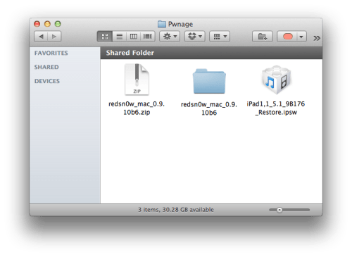 Download the latest version of RedSn0w from here and place it in the Pwnage folder. Likewise, download the 5.1 firmware from here and place it in the Pwnage folder. (Note: you do not need to download the 5.1 firmware if you are already on iOS 5.1)